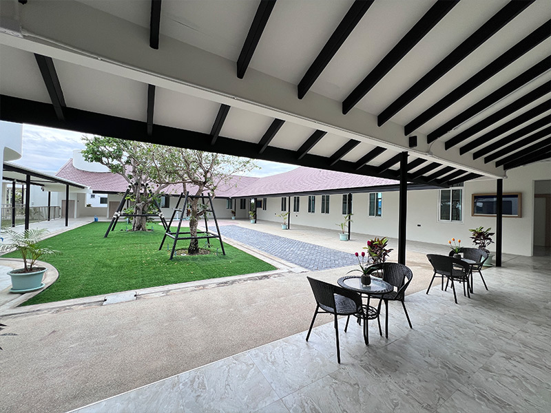 - เราสร้างสภาพแวดล้อมที่เป็นมิตร ใกล้ชิดธรรมชาติ พร้อมบรรยากาศที่อบอุ่นและปลอดภัย ให้ผู้สูงอายุได้พักผ่อนอย่างมีความสุข รู้สึกผ่อนคลาย และมีคุณภาพชีวิตที่ดีขึ้นทุกวัน